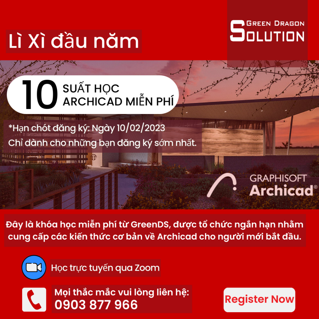 Khóa Học Archicad Miễn Phí Năm 2023Điều gì đang chờ đón bạn ở Tháng 2 này? Để Ad bật mí nhẹ sự kiện Archicad miễn phí của GreenDS trong tháng 2 tới nha. Lì xì may mắn cho…