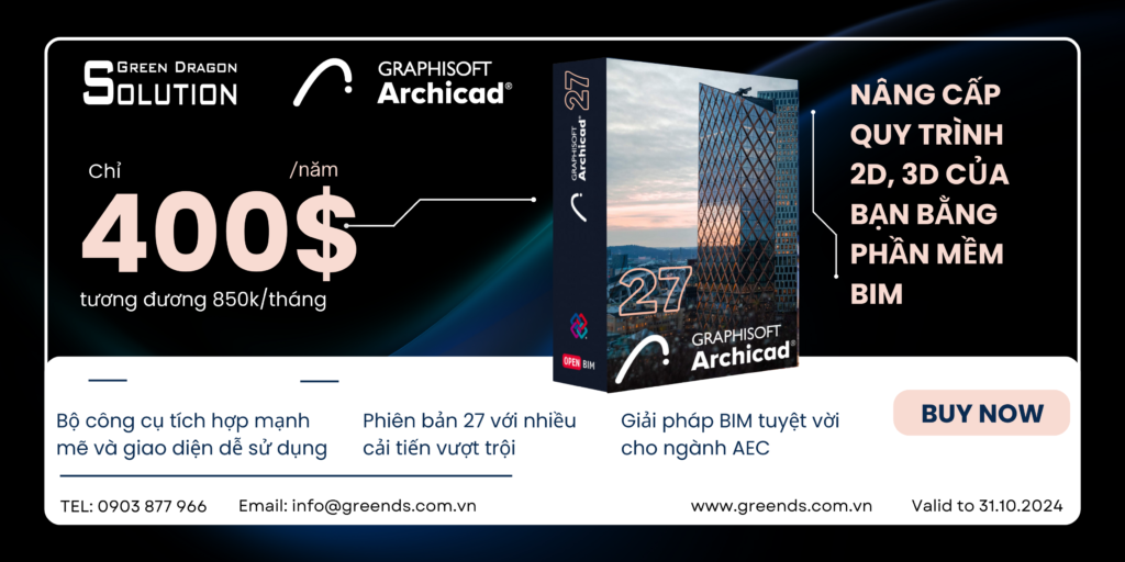 Chúng tôi rất vui mừng thông báo chương trình khuyến mãi đặc biệt từ GreenDS. Chỉ với 400$, Quý khách có thể sở hữu ngay bản quyền Archicad 01 năm, tương đương…