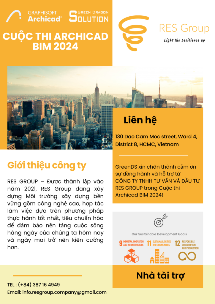 GreenDS rất vui mừng thông báo rằng Công ty TNHH Tư vấn Đầu tư RES Group sẽ tham gia Cuộc thi Archicad BIM 2024. Sự hiện diện của RES Group không chỉ…